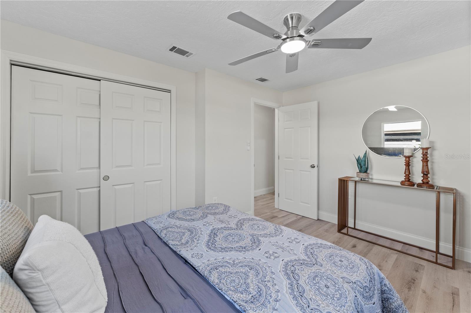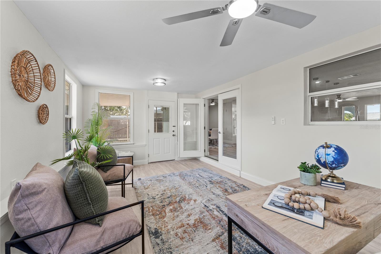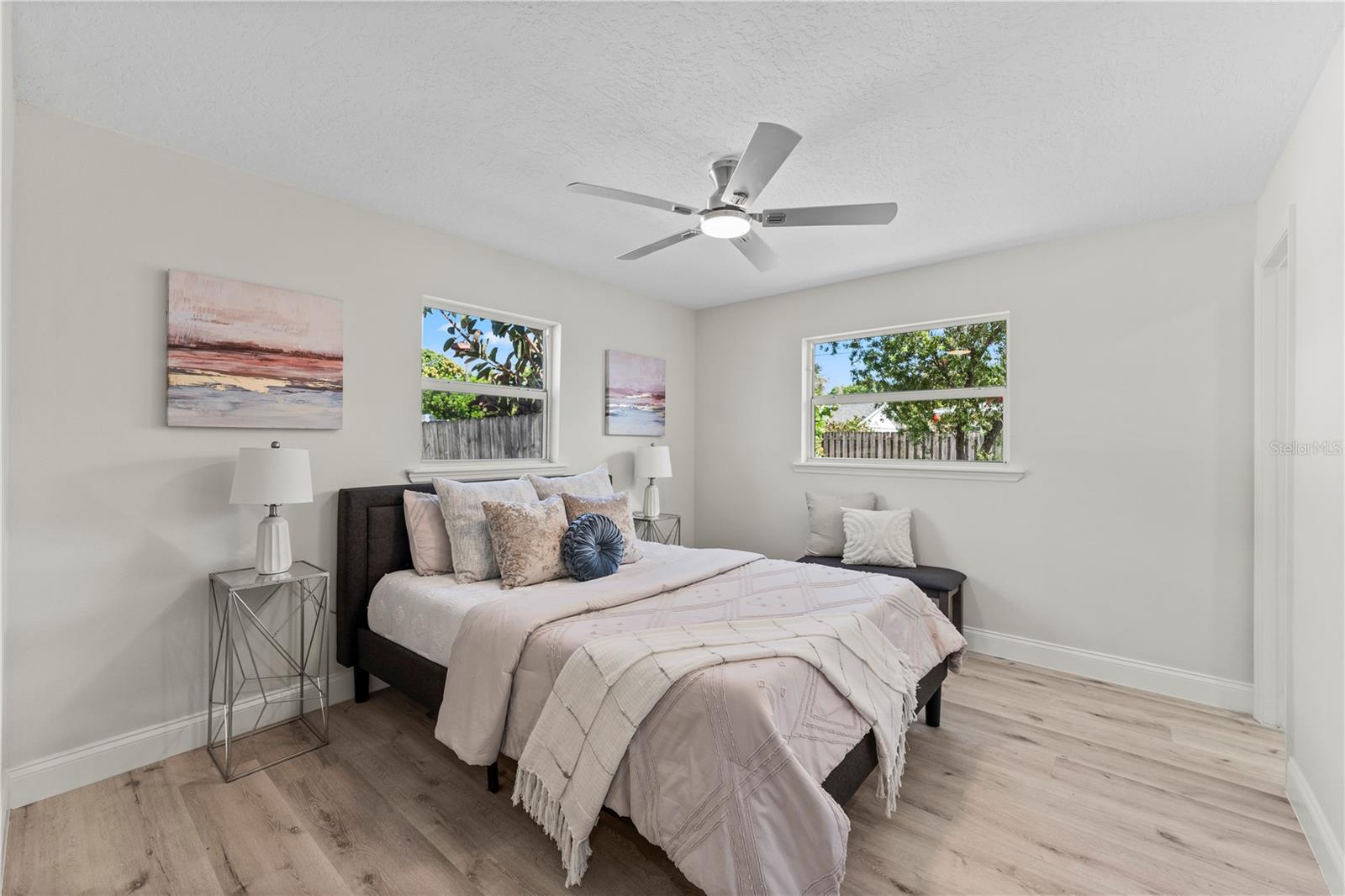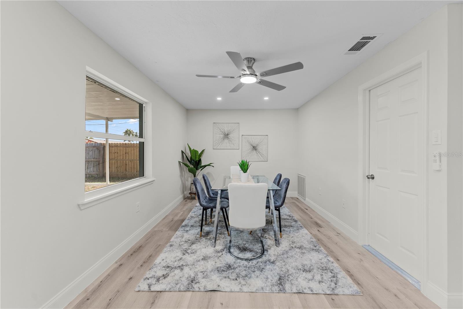 This beautifully renovated Indialantic home perfectly blends coastal charm with stylish, modern upgrades throughout. The open floor plan creates a bright, airy feel, anchored by luxury vinyl plank flooring and a brand-new kitchen that truly impresses. Designed for both function and beauty, the kitchen features stainless steel appliances, crisp white shaker cabinets, quartz countertops, a subway tile backsplash, and a stunning island with a gorgeous quartz waterfall. Both the master and guest bathrooms have been fully redesigned with tasteful tilework, updated vanities, and contemporary fixtures. The spacious primary suite includes a generous walk-in closet and a private bath with sleek finishes. A large flex space at the rear of the home offers versatility—perfect as a sunroom, home office, or playroom. Additional updates include a new HVAC system, new water heater, and fresh interior paint. The roof was replaced in 2019, offering peace of mind for years to come. Set just minutes from the beach, local dining, shopping, and top-rated schools, this turnkey property is a rare opportunity to enjoy modern coastal living in a highly sought-after location.